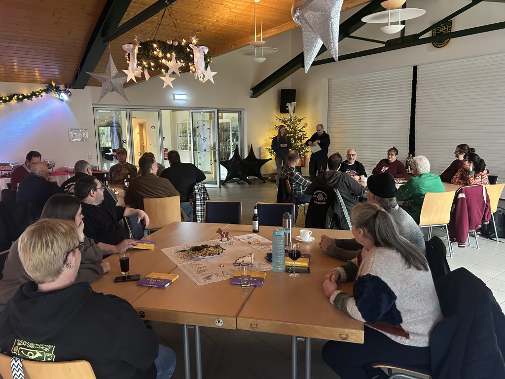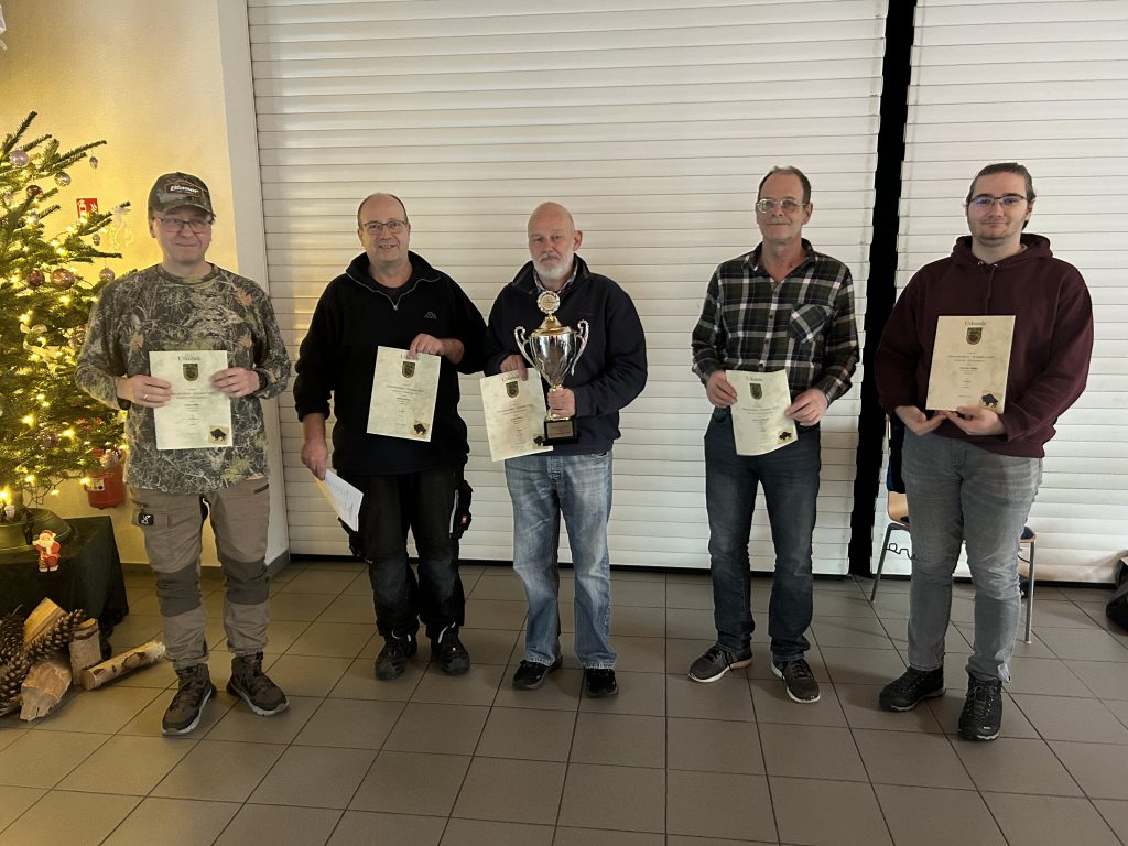 Am Sonntag, den 07.12.2025 fand unser jährliches Jahresabschluss-Schießen statt. Bei einer heißen Tasse Kaffee, Essen vom Buffet und dem ein oder anderen Kaltgetränk wurde wie üblich auf Büffelscheiben geschossen. Den ersten Platz belegte in diesem Jahr Jens Eckleben mit 74 Ringen, Dirk Korthauer den zweiten Platz mit 69 und Thomas Weibrecht den dritten Platz mit 67 Ringen. Als beste Frau erreichte Heike Hilgers mit 63 Ringen den 8. Platz.