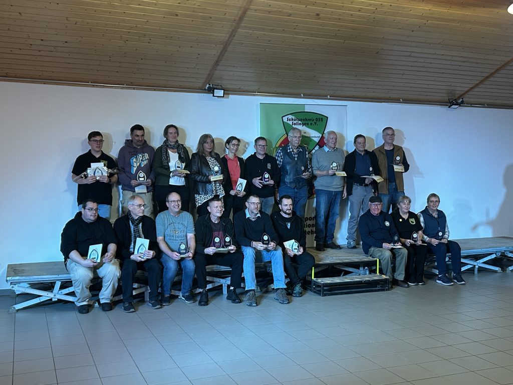 Nach der Begrüßung durch den Kreisvorsitzenden Thomas Brandtner, der ein oder anderen Tasse Kaffee und einem Stück Kuchen ging es schon mit dem Kreiskönigs- und Kreisprinzenschießen los. Insgesamt waren 7 Teilnehmer, die um die Königswürde unter der Leitung von Ralf Peter Schönthal und Rainer Melles, schossen. Nach dem Wettkampf wurden zuerst die Teilnehmer der Deutschen Meisterschaft 2025 ausgezeichnet. Jeder bekam einen Pokal und eine Urkunde überreicht.