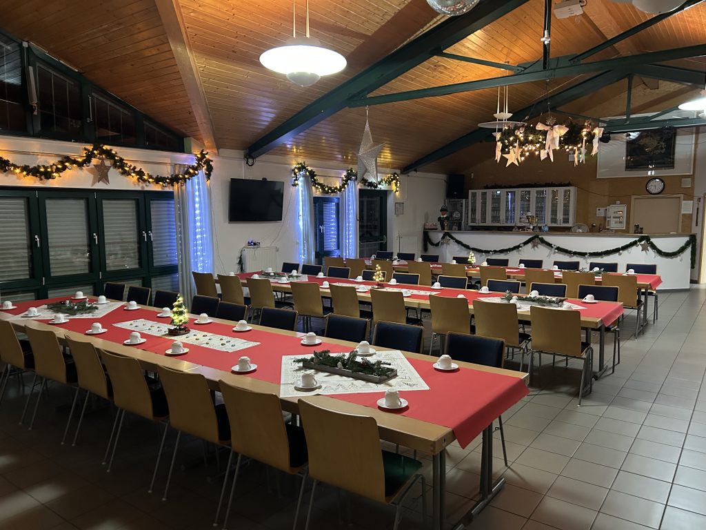 Am Samstag haben wir unsere diesjährige Weihnachtsfeier gefeiert. Der Saal war festlich geschmückt. Am Nachmittag gab es Kaffee und selbstgebackene Kuchen. Danach stattete uns der Nikolaus einen Besuch ab und beschenkte unsere Jugend mit ein paar Worten und einem Nikolausstrumpf. Zum Abend hin gab es dann noch Glühwein, Salate und Gegrilltes.